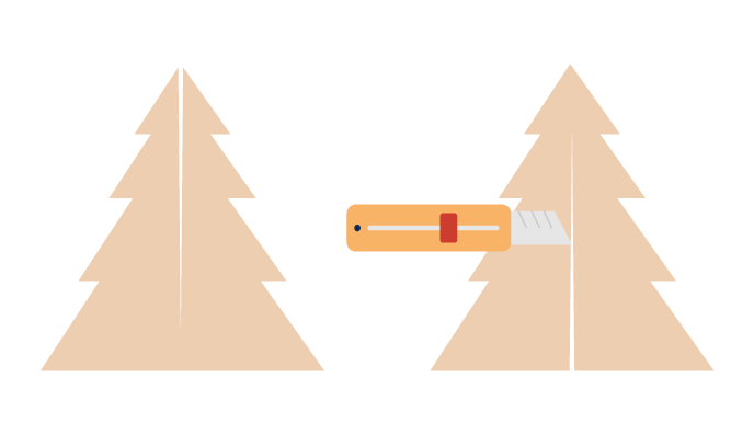 Nůžkami nebo nožem prořízněte karton podle tvaru stromu. Abyste dosáhli hezkého řezu, použijte co nejpřesnější nástroj a možná i pravítko.