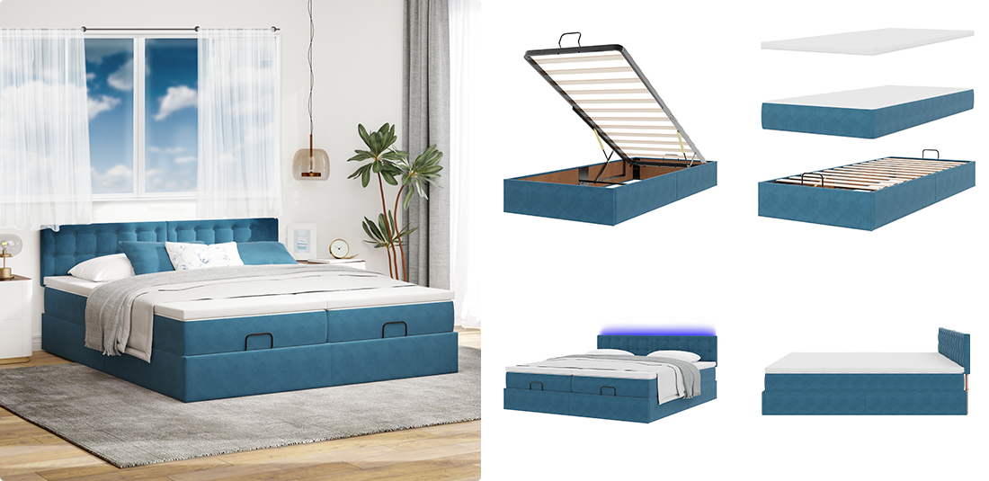 Užijte si lepší odpočinek a pohodlí s naší novou kolekcí postelí. Naše úložné postele nabízejí velkorysý úložný prostor a snadný přístup díky hydraulickému pístu, takže jsou ideální pro malé prostory. Pro klidnější spánek prozkoumejte naše sametové box spring postele, které se dodávají s pružinovou matrací pro individuální oporu a měkkým topperem, jež zajistí větší pohodlí. Ať už potřebujete pro skvělý spánek cokoli, najdete to v naší nejnovější nabídce.