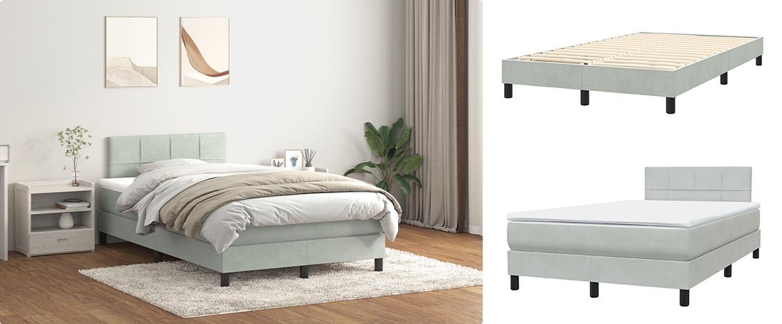 Tato postelová sestava se skládá z rámu postele, pružinové matrace a měkkého topperu, což vám poskytne dokonalé pohodlí. Sametový rám dodává útulný nádech, zatímco taštičkové pružiny poskytují individuální oporu a snižují přenos pohybu. Lamelový rošt nabízí mimořádnou prodyšnost a udržuje matraci svěží. Jedná se o dokonalou kombinaci „vše v jednom“.