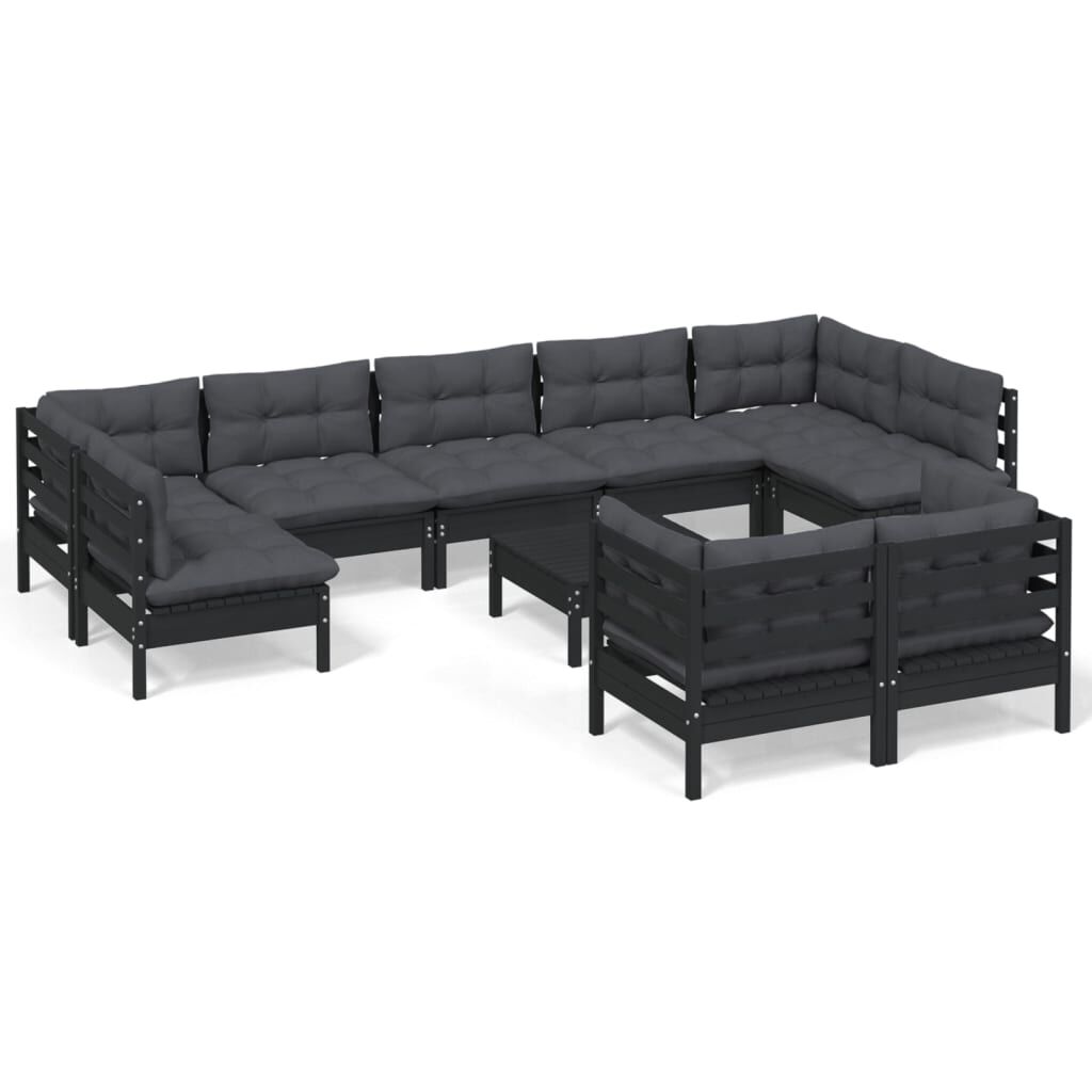 vidaXL 10dílná zahradní sedací souprava podušky černá masivní borovice