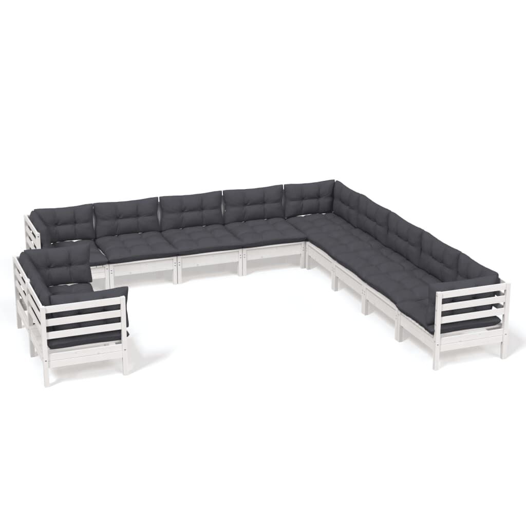vidaXL 11dílná zahradní sedací souprava podušky bílá masivní borovice