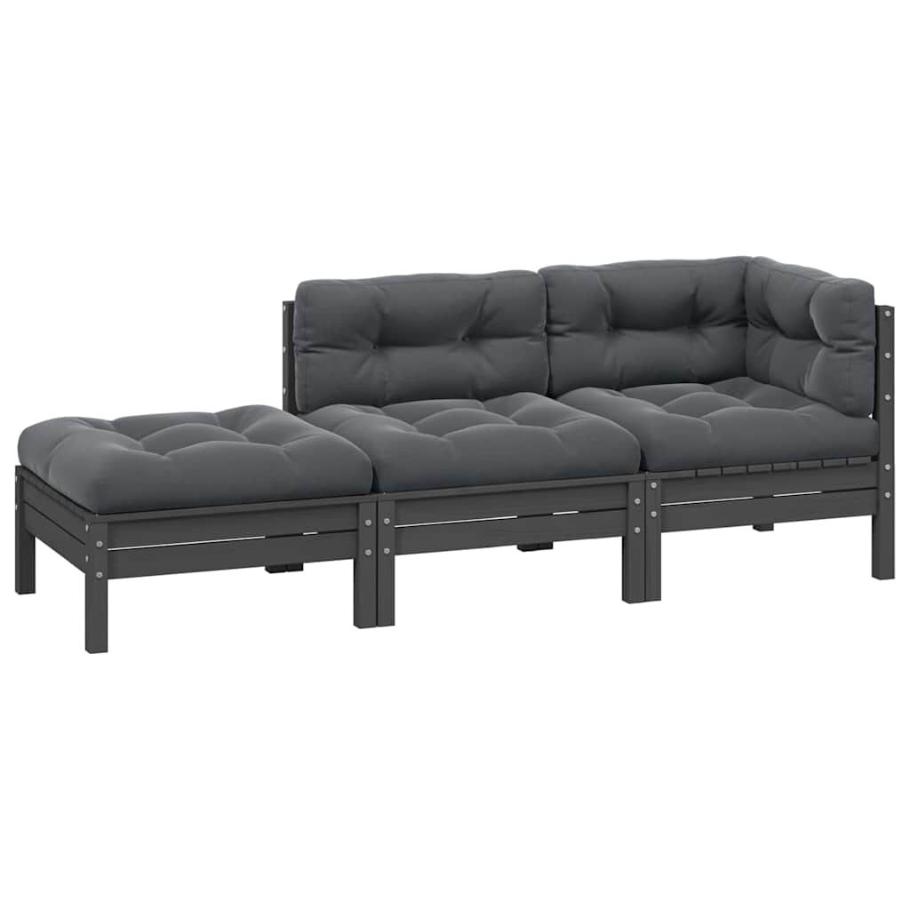 vidaXL 3dílná zahradní sedací souprava a podušky šedá masivní borovice