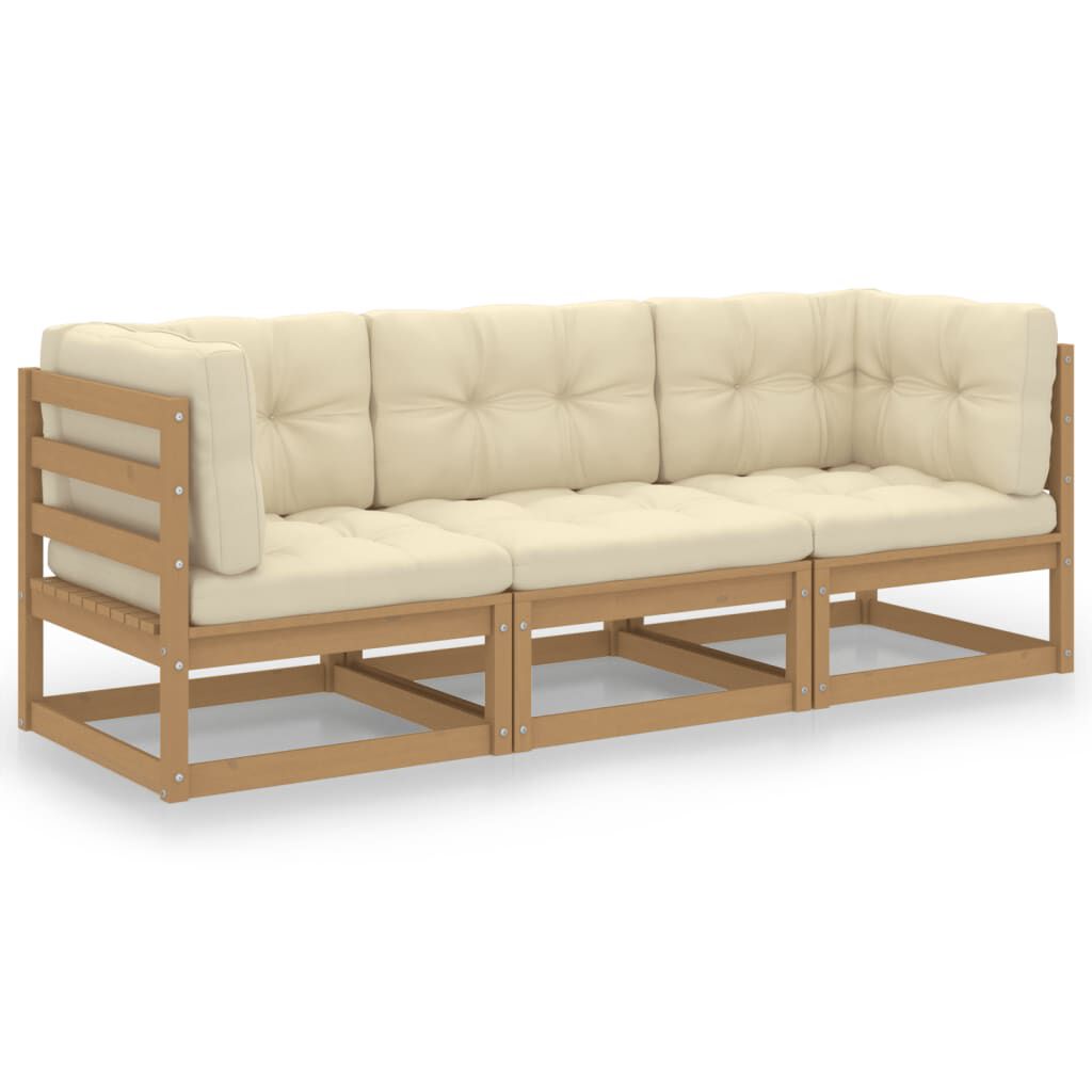 vidaXL 3místná zahradní pohovka s poduškami masivní borovice