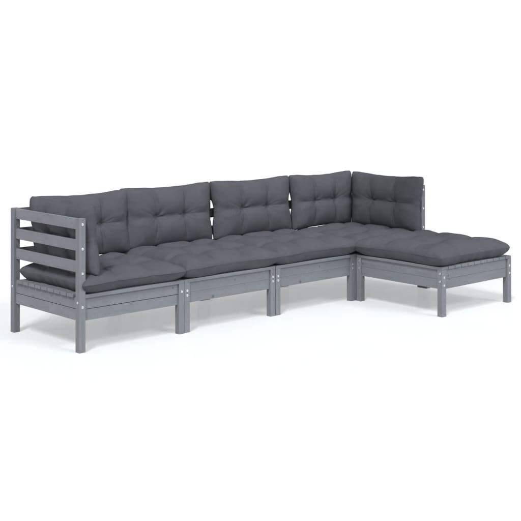 vidaXL 5dílná zahradní sedací souprava s poduškami šedá borovice