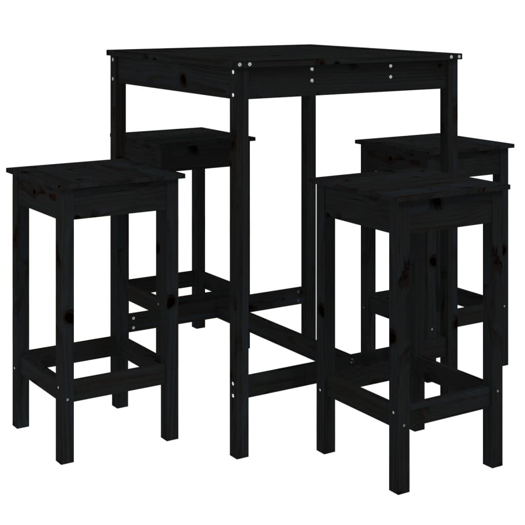 vidaXL 5dílný zahradní barový set černý masivní borové dřevo