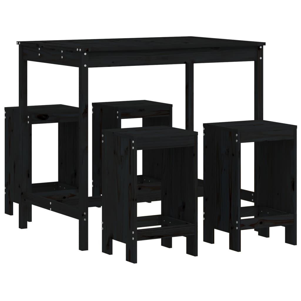 vidaXL 5dílný zahradní barový set černý masivní borové dřevo
