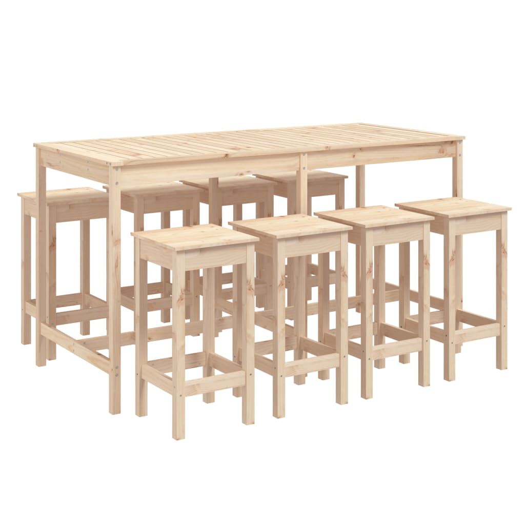 vidaXL 9dílný zahradní barový set masivní borové dřevo