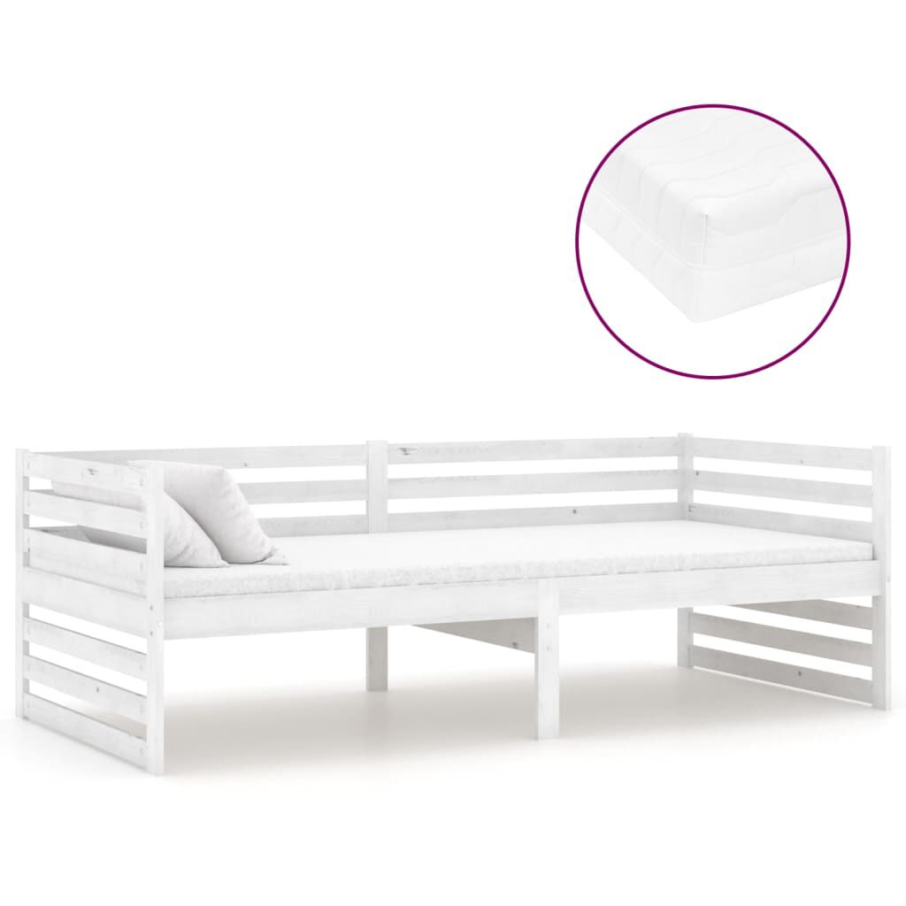 vidaXL Denní postel s matrací 90 x 200 cm bílá masivní borové dřevo