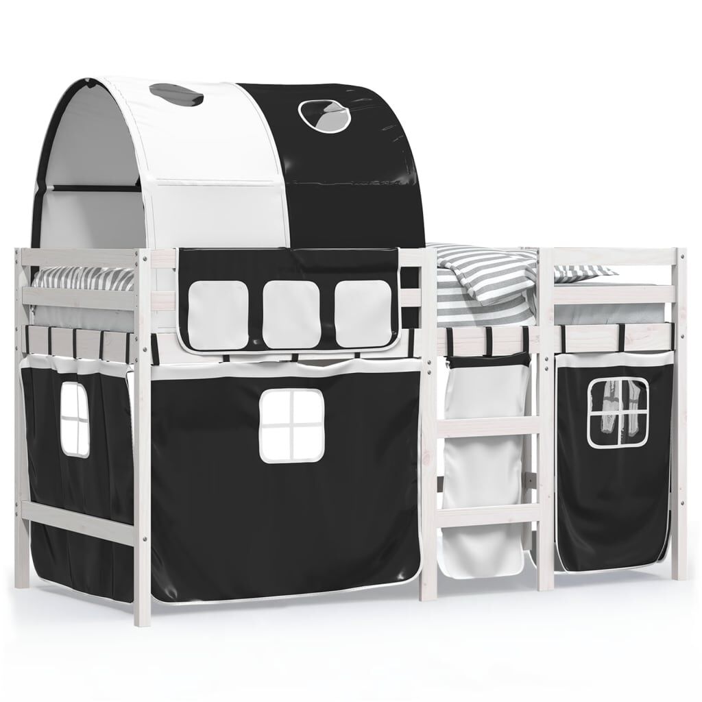 vidaXL Dětská patrová postel s tunelem bílá a černá 80x200 cm borovice