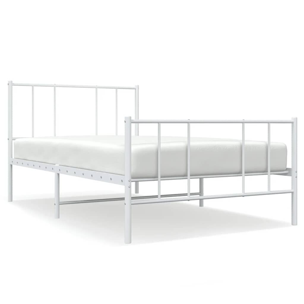 vidaXL Kovový rám postele s hlavovým a nožním čelem bílý 100 x 190 cm