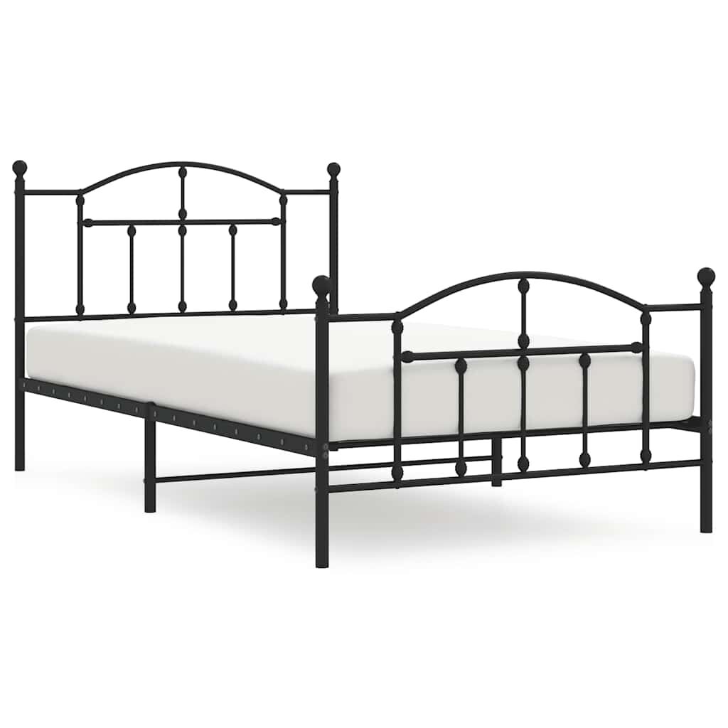 vidaXL Kovový rám postele s hlavovým a nožním čelem černý 100 x 200 cm