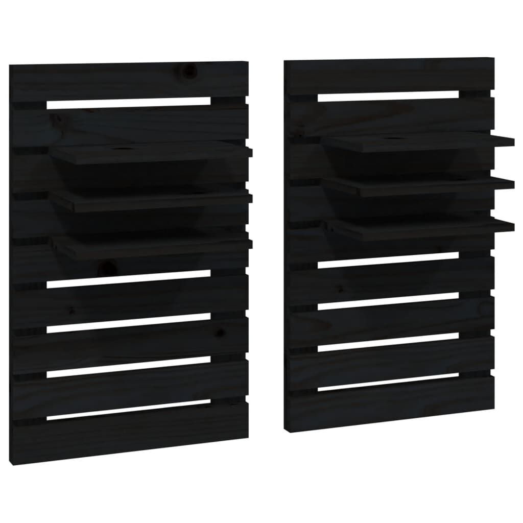 vidaXL Nástěnné poličky k posteli 2 ks černé masivní borové dřevo