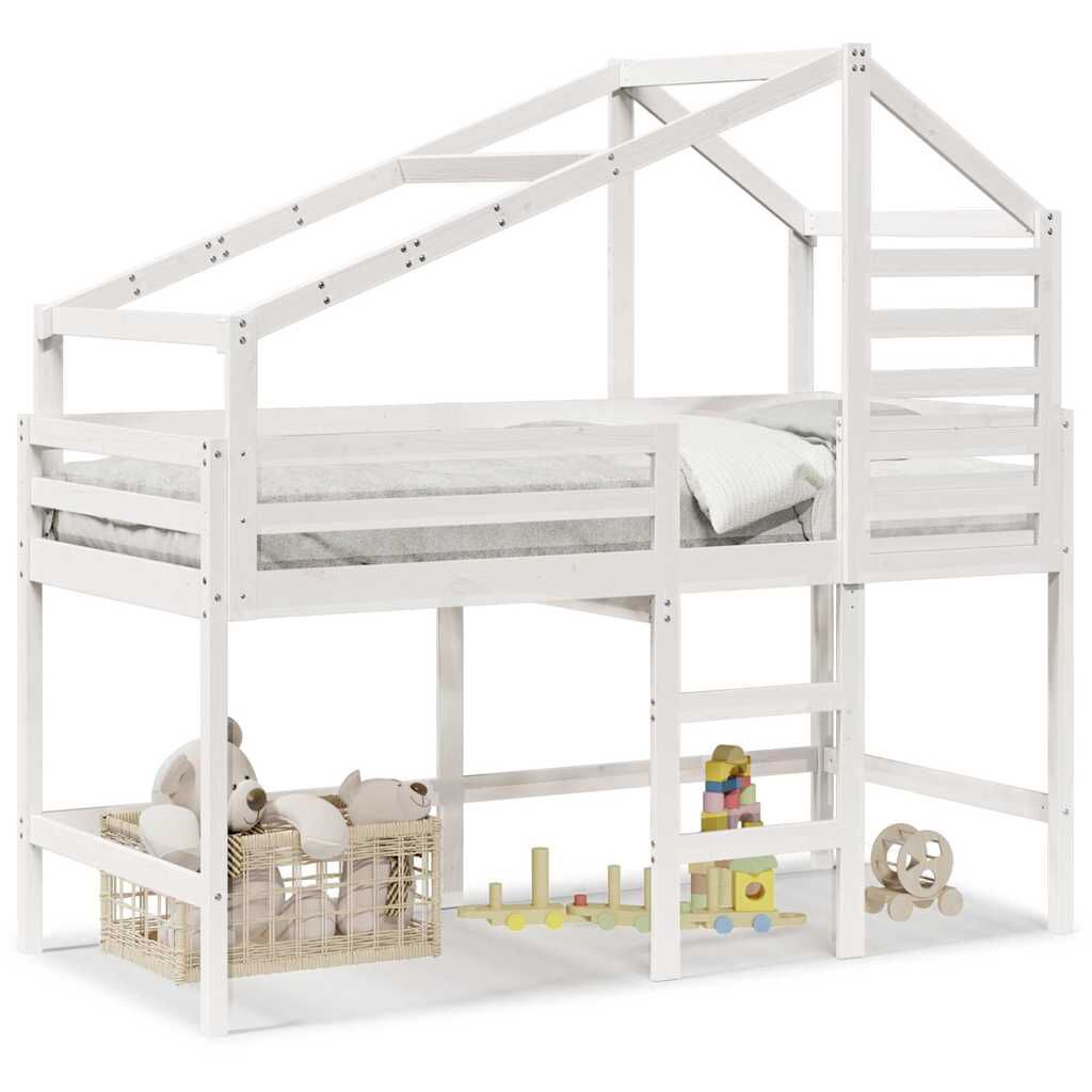 vidaXL Patrová postel s žebříkem a střechou bílá 90 x 190 cm borovice