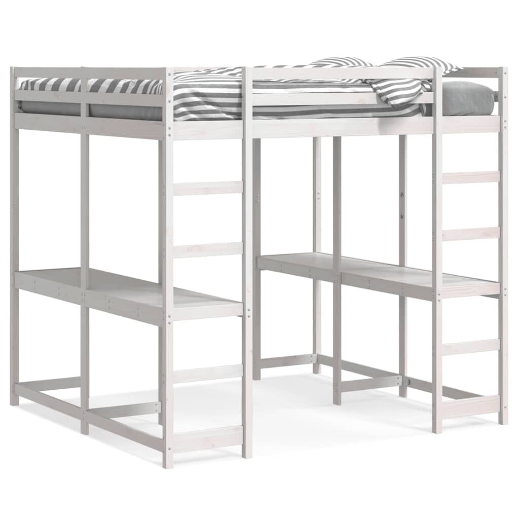 vidaXL Patrová postel se stolem a žebříkem bílá 180 x 200 cm borovice