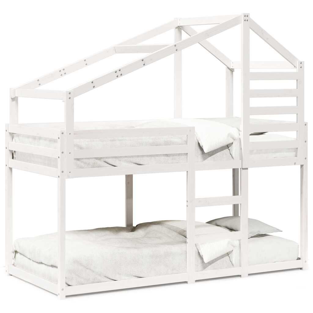 vidaXL Patrová postel se střechou bílá 90x200 cm masivní borové dřevo