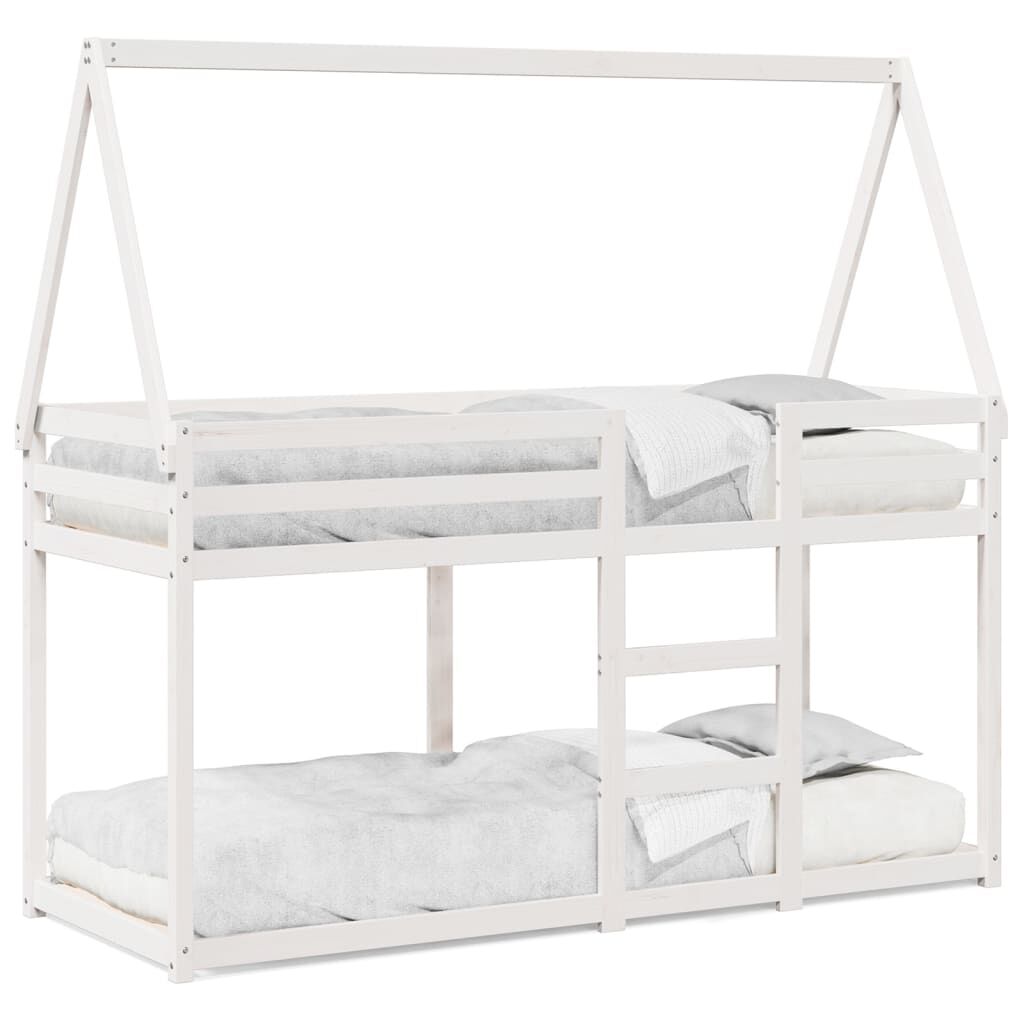 vidaXL Patrová postel se střechou bílá 90x200 cm masivní borové dřevo