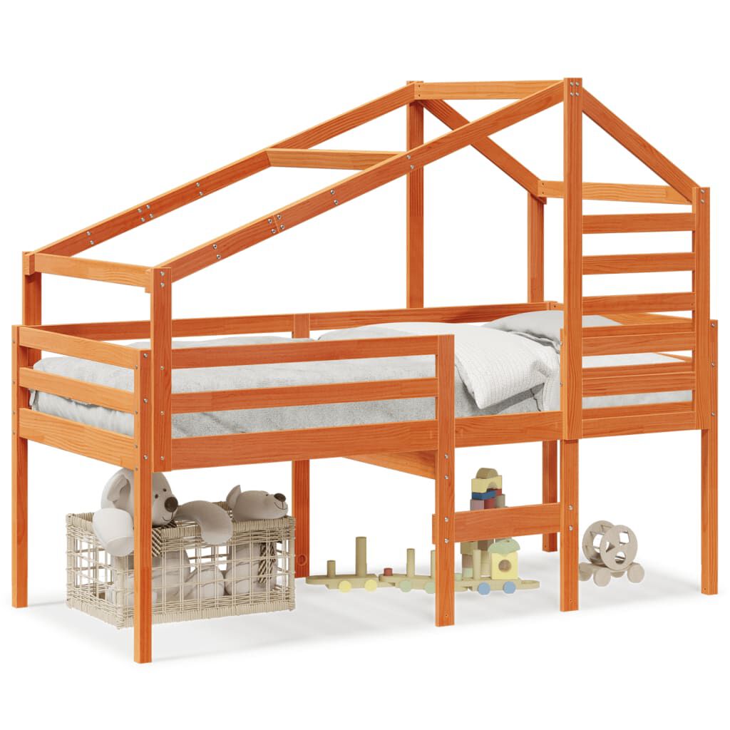 vidaXL Patrová postel se střechou voskově hnědá 90 x 190 cm borovice