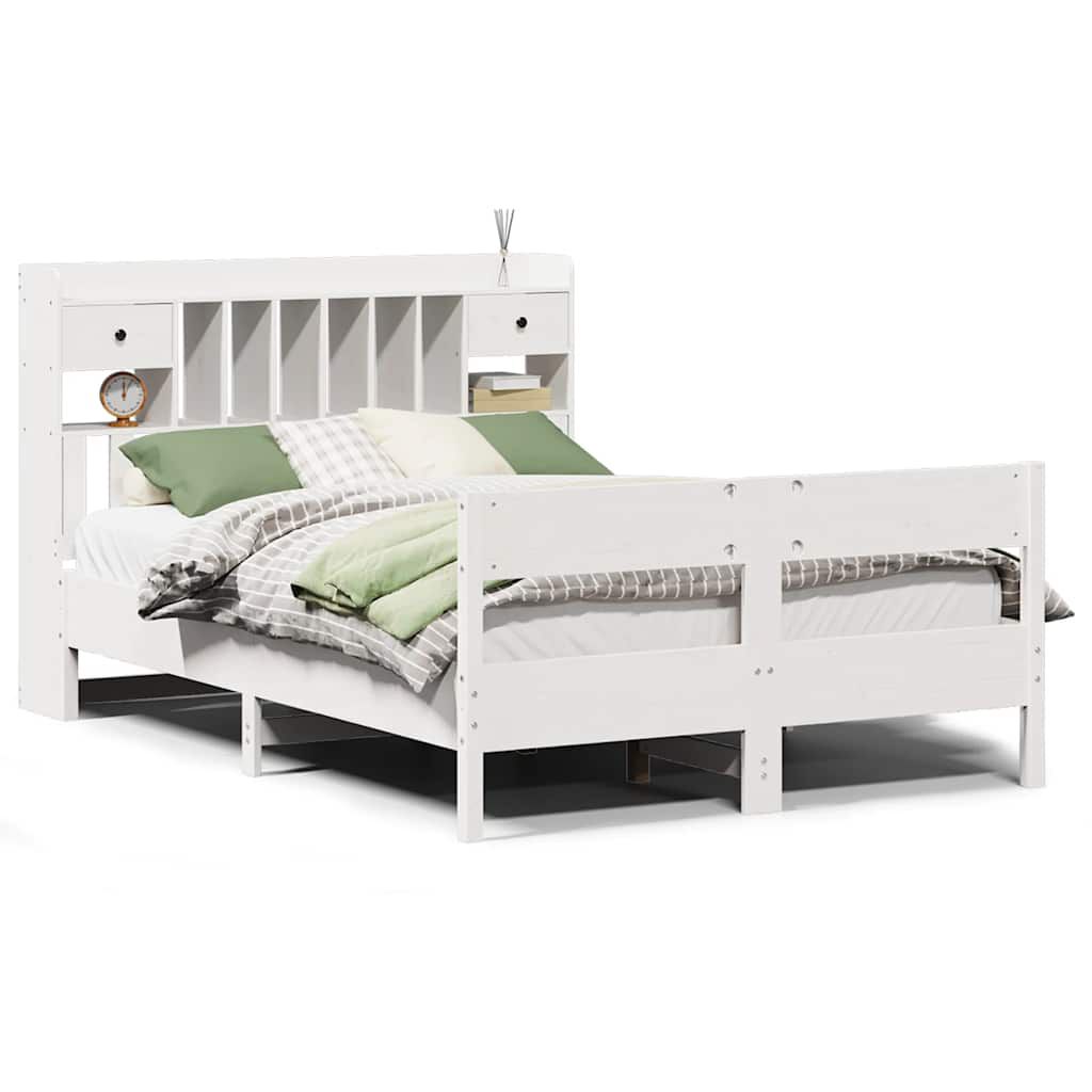 vidaXL Postel s knihovnou bez matrace bílá 140x200 cm masivní borovice