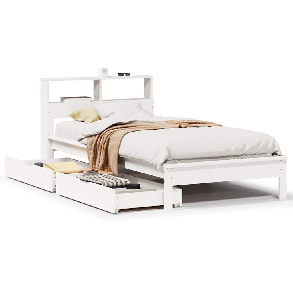 vidaXL Postel s knihovnou bez matrace bílá 90x190 cm masivní borovice