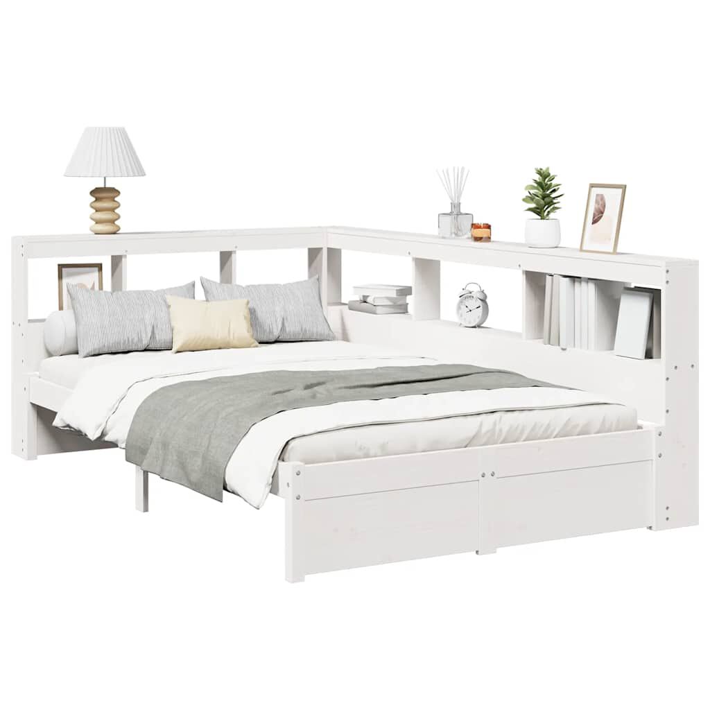vidaXL Postel s knihovnou bez matrace bílá 90x190 cm masivní borovice