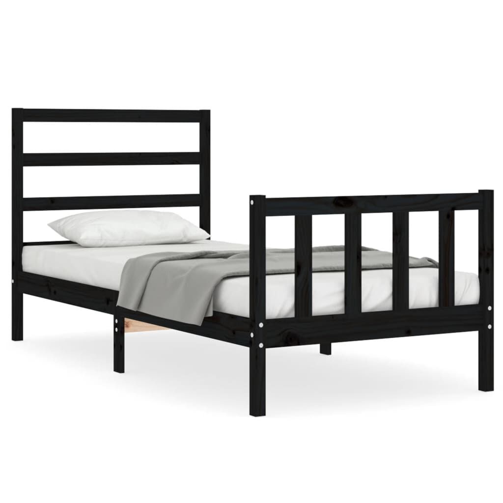 vidaXL Rám postele s čelem černý 100 x 200 cm masivní dřevo