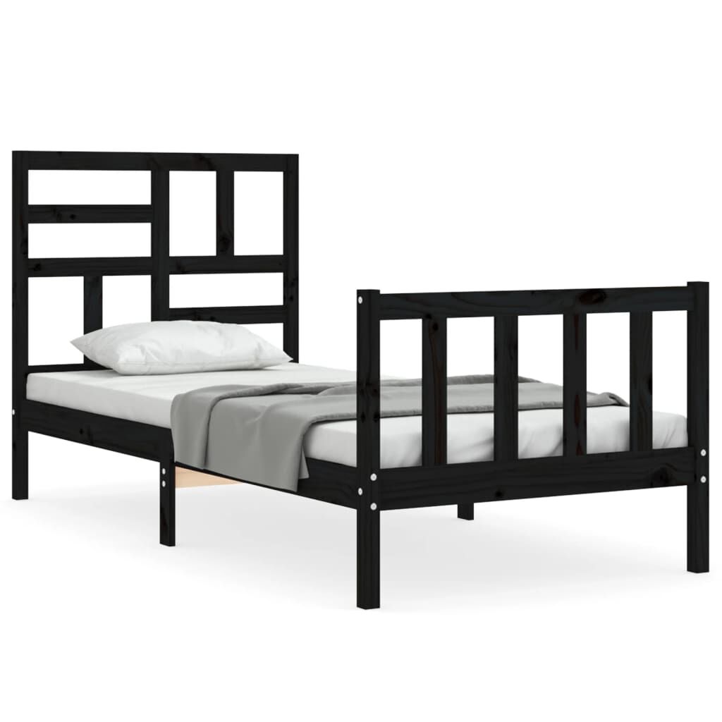 vidaXL Rám postele s čelem černý 100 x 200 cm masivní dřevo
