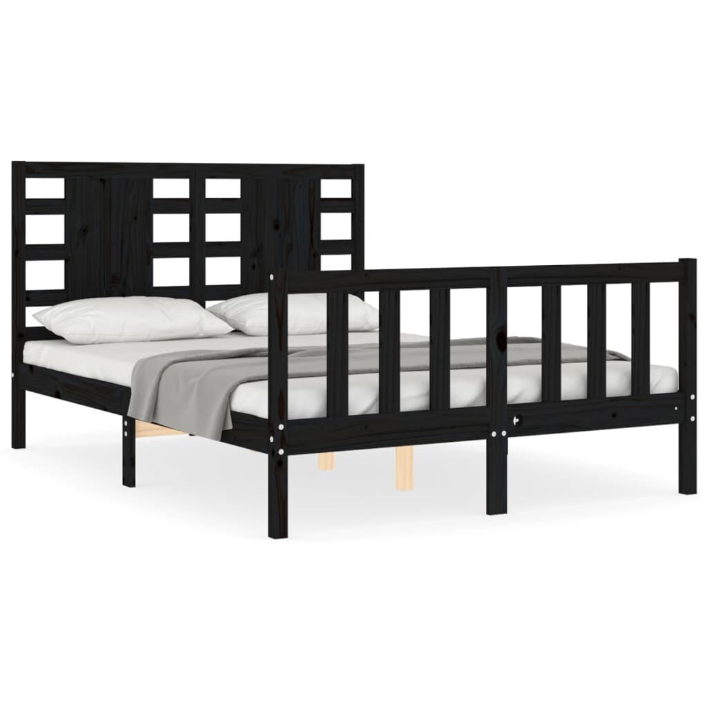 vidaXL Rám postele s čelem černý Double masivní dřevo