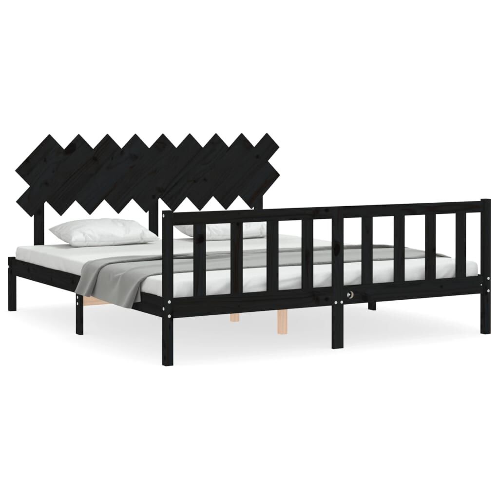 vidaXL Rám postele s čelem černý Super King Size masivní dřevo