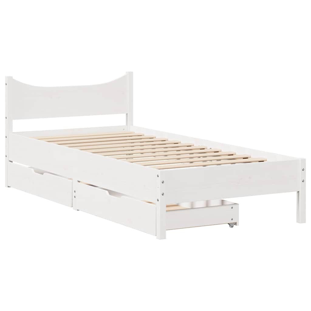 vidaXL Rám postele se zásuvkami bílý 75 x 190 cm masivní borové dřevo