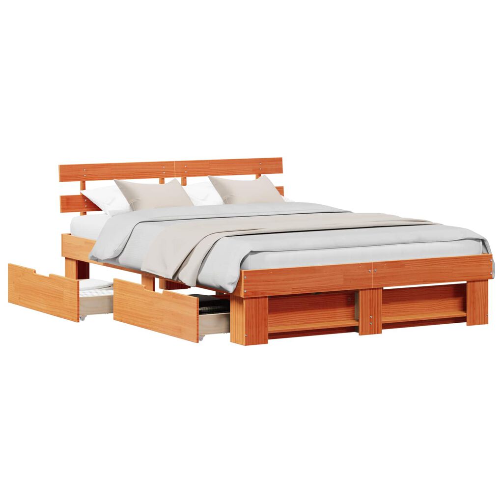 vidaXL Rám postele Voskově hnědá 150 x 200 cm Masivní borové dřevo