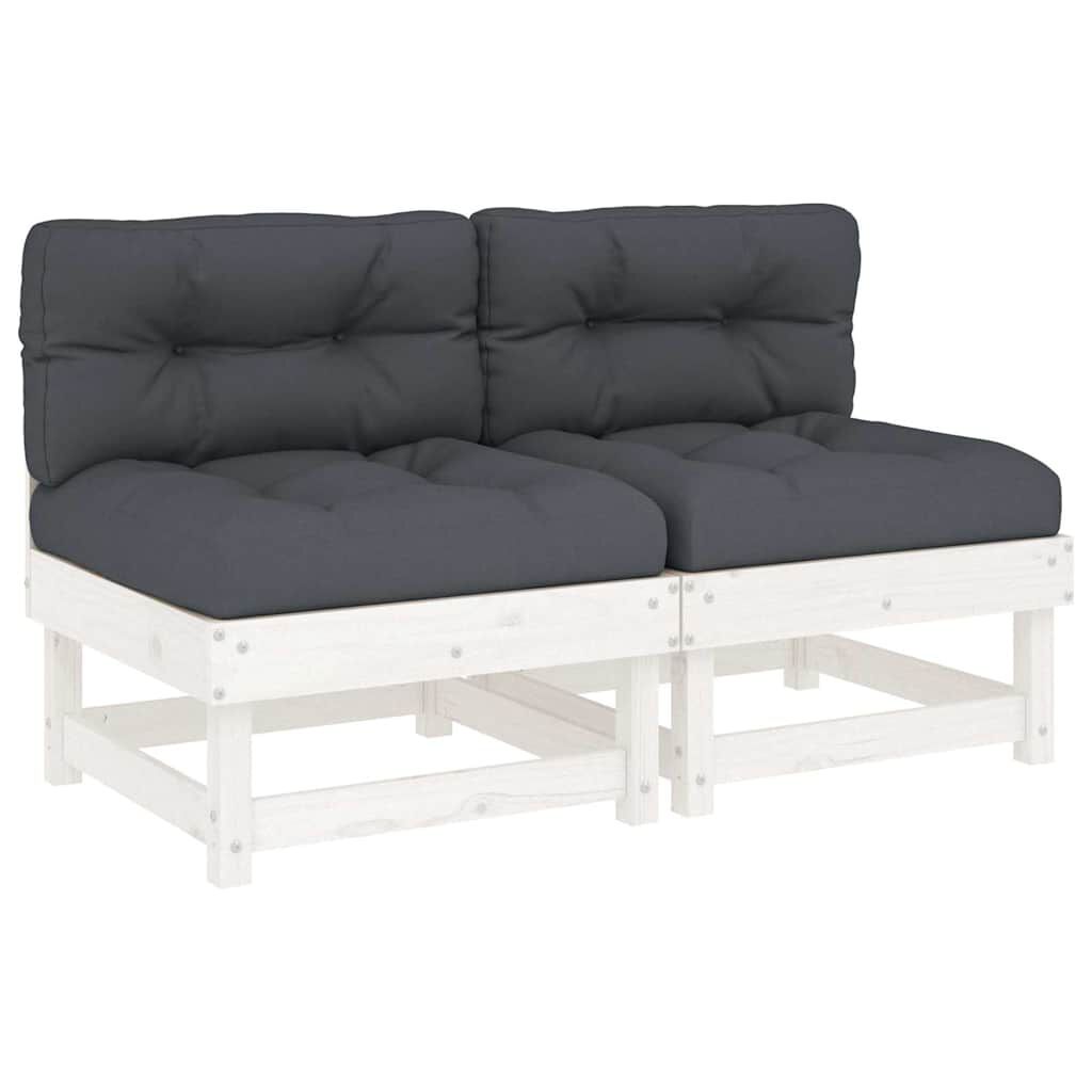 vidaXL Středové pohovky s poduškami 2 ks bílé masivní borové dřevo