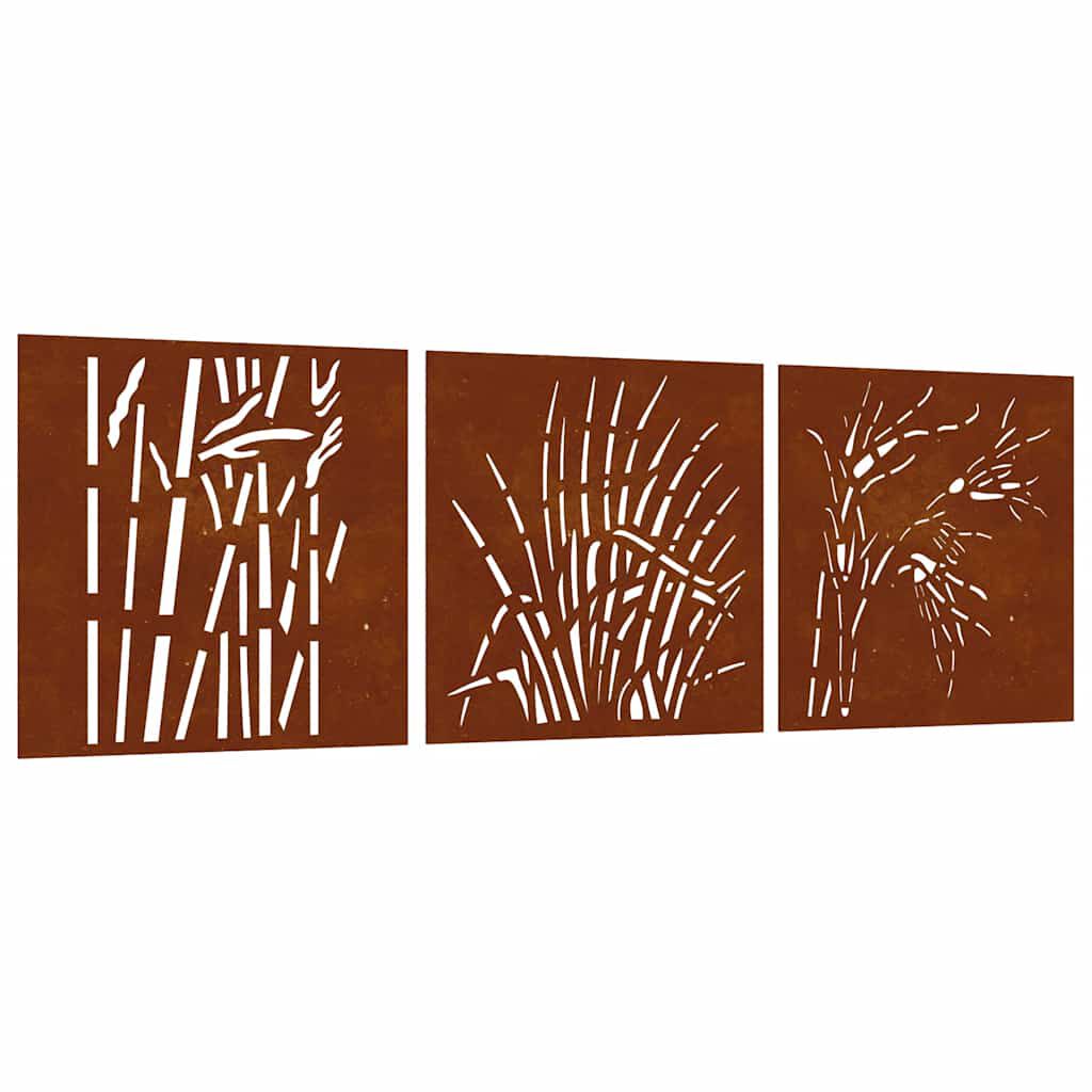 vidaXL Zahradní nástěnné dekorace 3 ks 55 x 55 cm cortenová ocel Tráva
