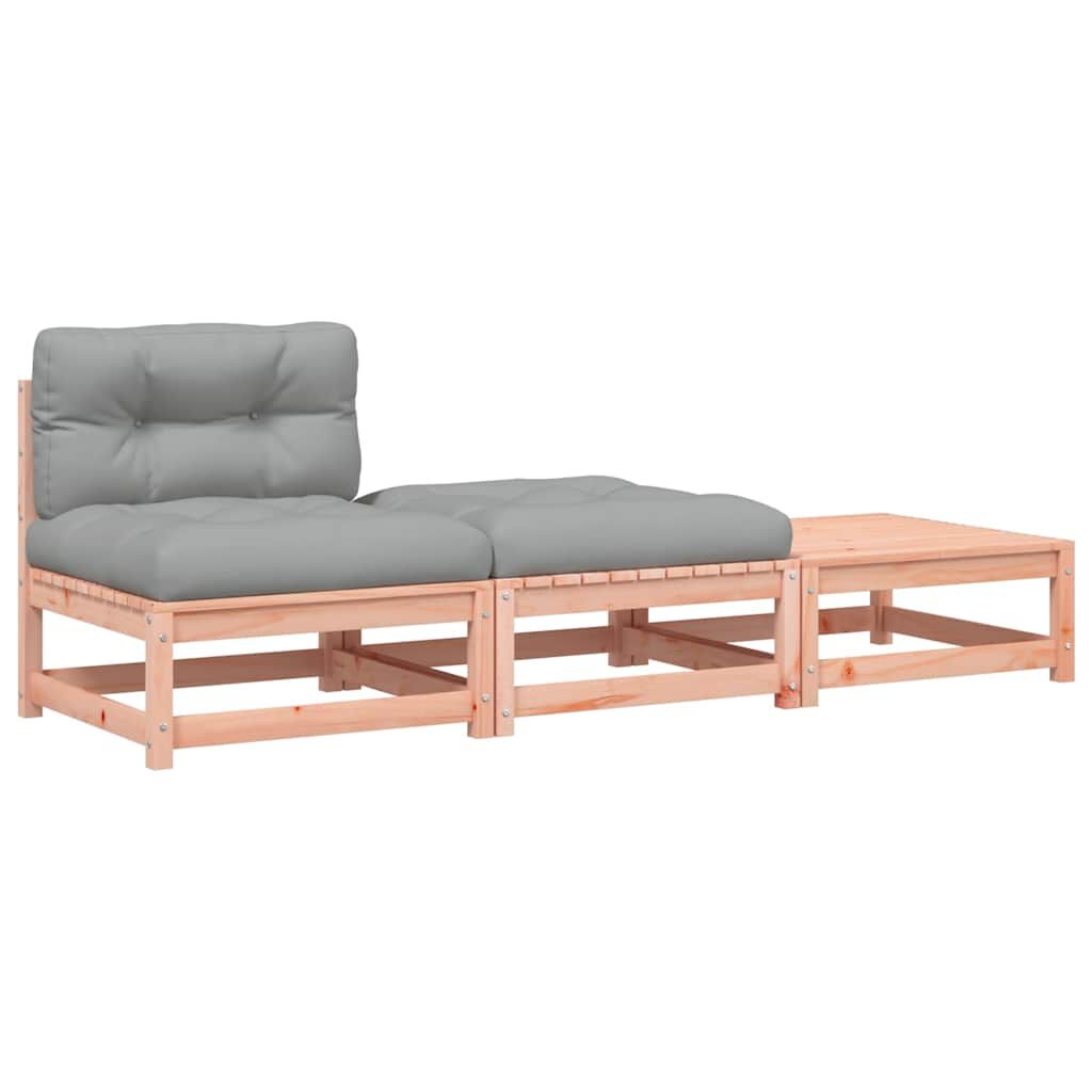 • Masivní dřevo douglasky: Masivní dřevo douglasky je vysoce odolný druh dřeva, který se výborně hodí pro venkovní použití. Dřevo douglasky je také pevné a vyžaduje minimum údržby i pod vlivem povětrnostních podmínek. Tato pohovka bez područek je vyrobena z masivního dřeva douglasky, je tedy odolná a stabilní.
