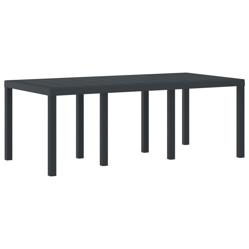 Tento moderní zahradní stůl dodá vašemu venkovnímu prostoru eleganci, ideální pro setkání s rodinou a přáteli. Díky hladkým liniím a modernímu designu se skvěle hodí na zahrady, terasy či do venkovních lounge. Je praktický pro stolování i společenské akce. Obdélníkový tvar nabízí spoustu místa, ideální pro velké večírky nebo rodinné večeře pod širým nebem. Díky robustní konstrukci vydrží dlouho a zvládne i časté používání.