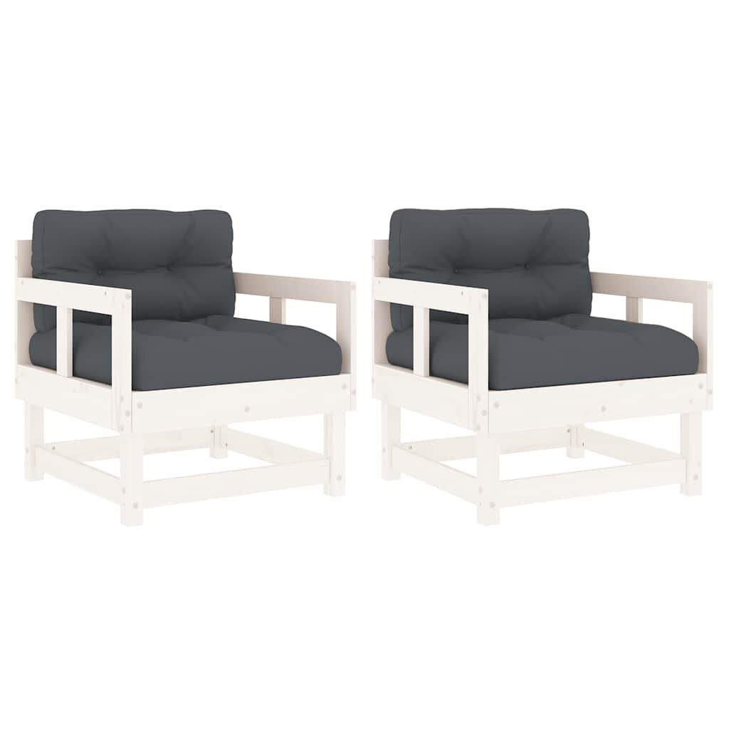 vidaXL Zahradní židle s poduškami 2 ks bílé masivní borové dřevo