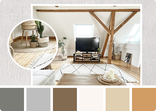 Mějte na mysli vše, co je přirozené, tlumené a pohodlné. Farmářská barevná paleta využívá teplou bílou, jemnou šedou a přírodní tóny dřeva.