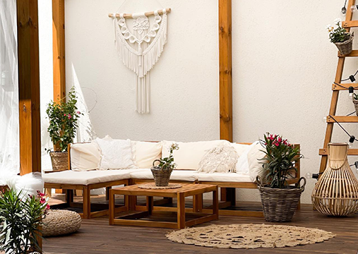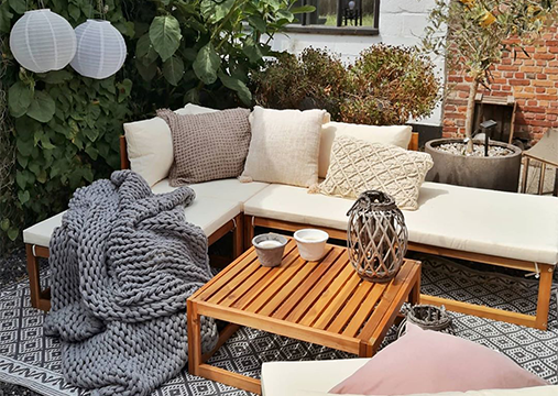 Klíčovým prvkem vašeho venkovního bydlení je dosáhnout zenu. Nechte se inspirovat ke zpomalení, pořiďte si umělé rostliny, slunečník pro stín nebo si zkrášlete prostor uklidňující fontánou.