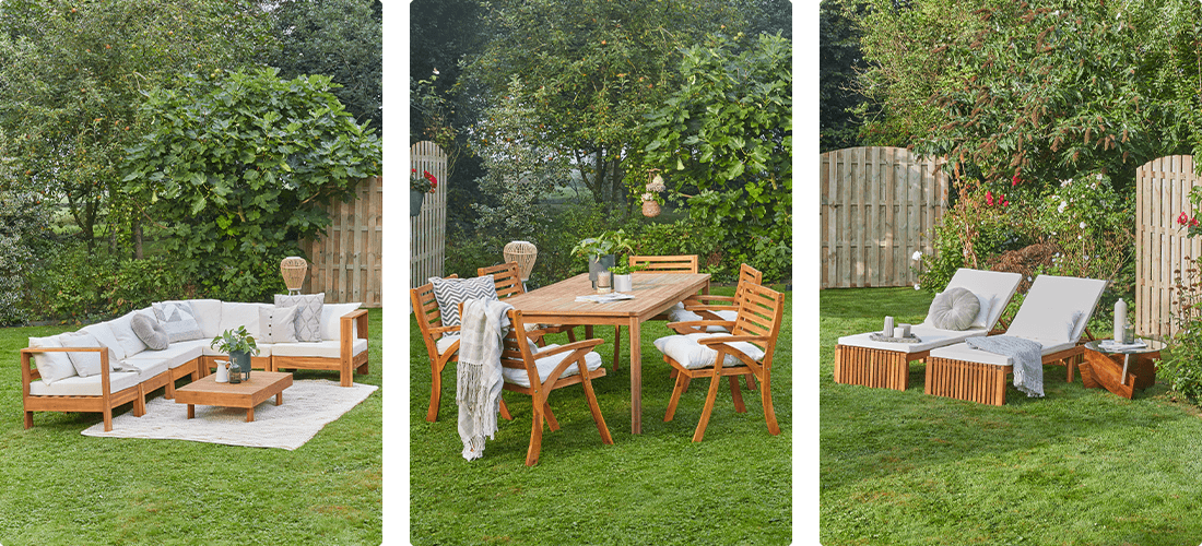 Dřevěný zahradní nábytek vytváří relaxační, ale elegantní a trendy zahradní atmosféru. Všestranné dřevo vám umožní zařídit si venkovní bydlení přesně tak, jak chcete. Borovice, teak a bílý dub mají světlejší odstíny, ideální pro letní zahradu. Akáciové dřevo má výrazné a elegantní tóny, zatímco barva mahagonu nebo růžového dřeva dodá vašemu venkovnímu prostoru vintage atmosféru.